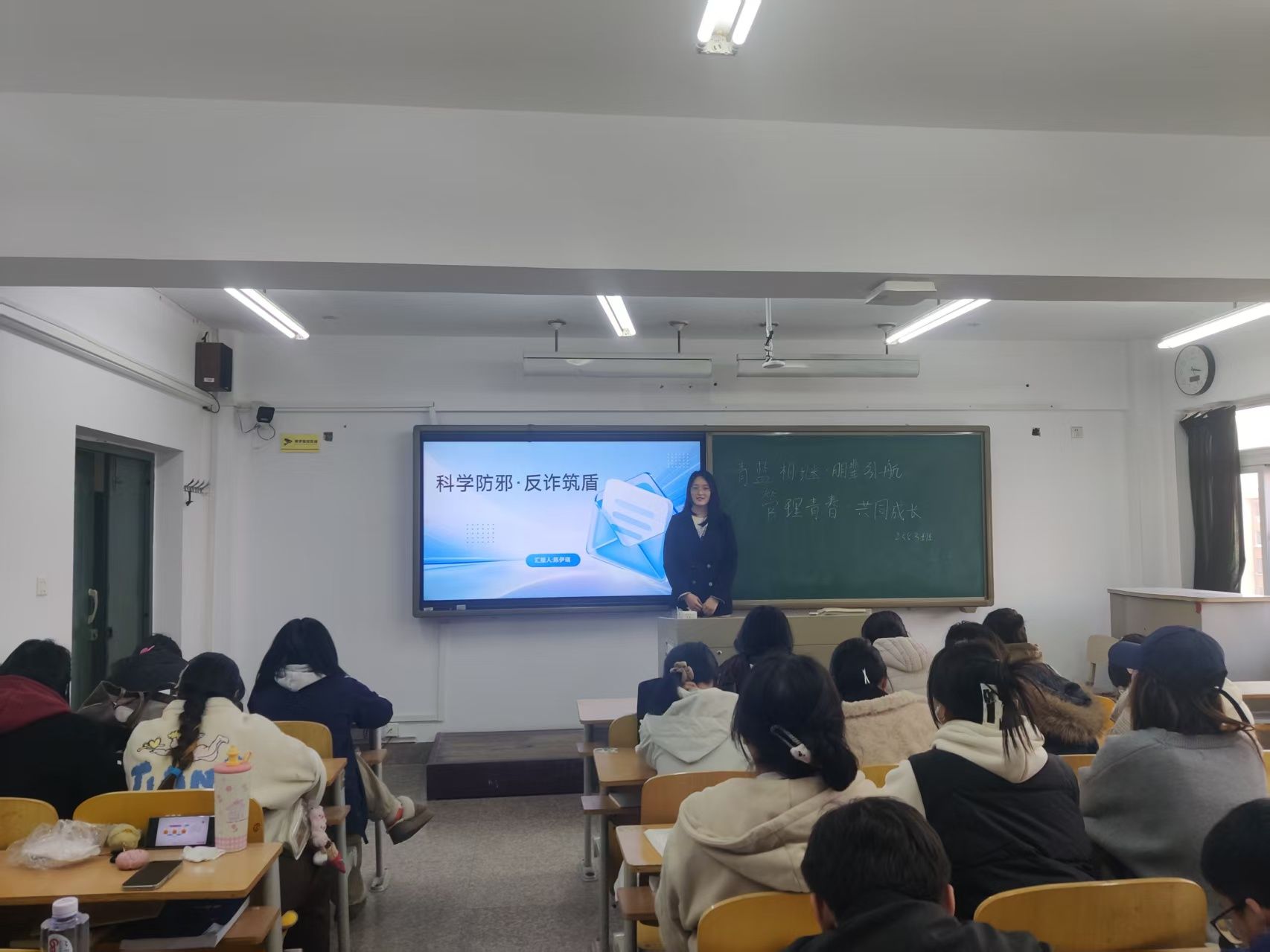 在活动中,各班级涌现出诸多亮点。例如,202351班的魏晴玉同学结合管理学知识,分享大学目标设定、时间管理等实操经验;吕祯雪同学剖析邪教本质与电诈防范策略,倡导宿舍安全自查;邢彩琴同学讲述抗战英雄事迹,阐释伟大抗战精神。202352班的卫俊杰同学作为发展对象,分享医保专业学习与党员标准践行经验;吴研同学探讨党的宗旨在新时代的深化与实践。202353班通过红色教育、邪教剖析和消防知识问答游戏,提升员工风险应对能力和心理调适能力。202450班的罗晓宇、郝宝仪和伊品怡同学分别分享党校体会、消防安全知识和多维安全防范策略。202451班解读校园安全风险与红色精神传承,形成安全韧性共识。202452班通过发言稿形式,强调自我管理方法、安全防线构建及抗战精神传承。