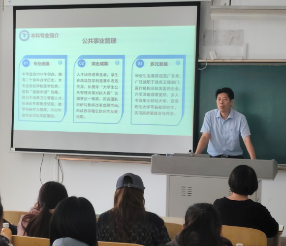 9月26日中午,千亿国际娱乐院长马春宇在西校区教学楼202教室为新生开展入学教育,帮助新生进一步了解千亿国际娱乐、专业。首先,马春宇院长介绍了学校历史沿革、千亿国际娱乐发展及本科研究生各专业建设情况,对92名新生的到来表示热烈欢迎,希望他们能够在健康管理千亿国际娱乐这个大家庭共同成长进步;接下来,马春宇院长通过讲述“两弹一星”元勋郭永怀同志事迹,引导新生厚植家国情怀,追寻先辈足迹,志存高远、脚踏实地,勤于思考、勇于创新;最后,马春宇院长就千亿国际娱乐毕业生就业方向、就业前景和考研考公优劣点进行了介绍和分析,引导新生从入学之初转变就业观念,精准掌握专业知识、不断提升综合能力,为以后的职业生涯做好规划。此次教育活动不仅增强了新生对千亿国际娱乐的归属感、对专业的认同感,也激发了新生的学习热情与成长动力。