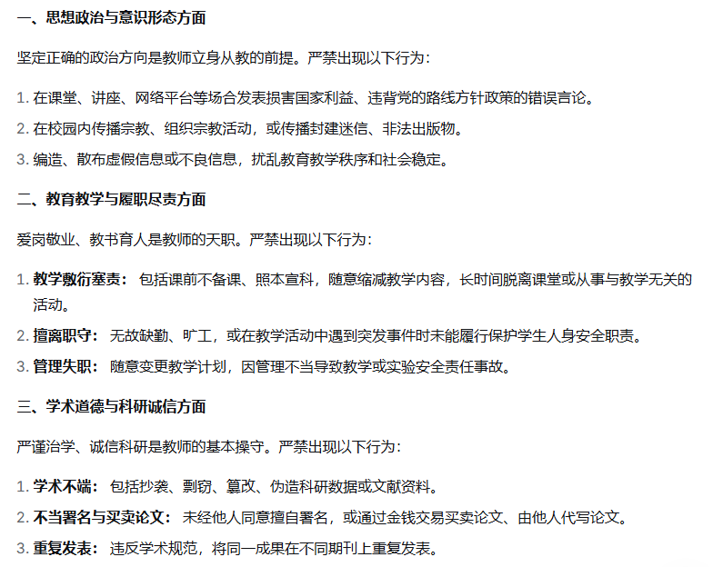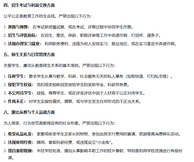 教师师德师风失范行为警示清单