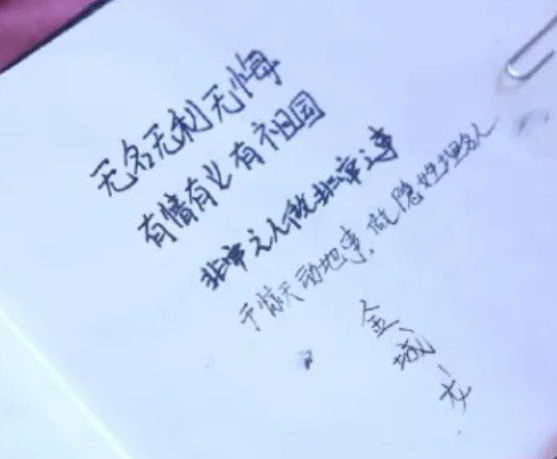 金城龙离世后,家人找到了3本厚厚的日记本。“点亮自己才能照亮别人”“当我化为尘土,请记得我的微笑”“干惊天动地事,做隐姓埋名人”“无名无利无悔,有情有义有祖国”……他是这样写的,也是这样做的。